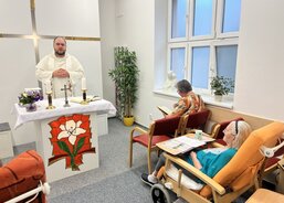 Pouť začala slavnostní mší svatou, která se konala v kapli Domova. Mše byla vedena knězem P. Hyacintem Petrem Ullmanem, OP, který svými slovy přinesl útěchu do srdcí všech přítomných. Na klávesy při mši krásně hrála emeritní ředitelka Městské charity Plzeň Anna Srbová. Pro mnohé seniory byla tato část slavnosti velmi důležitá a poskytla jim duchovní podporu.