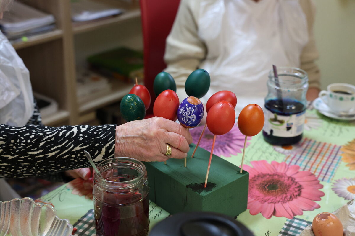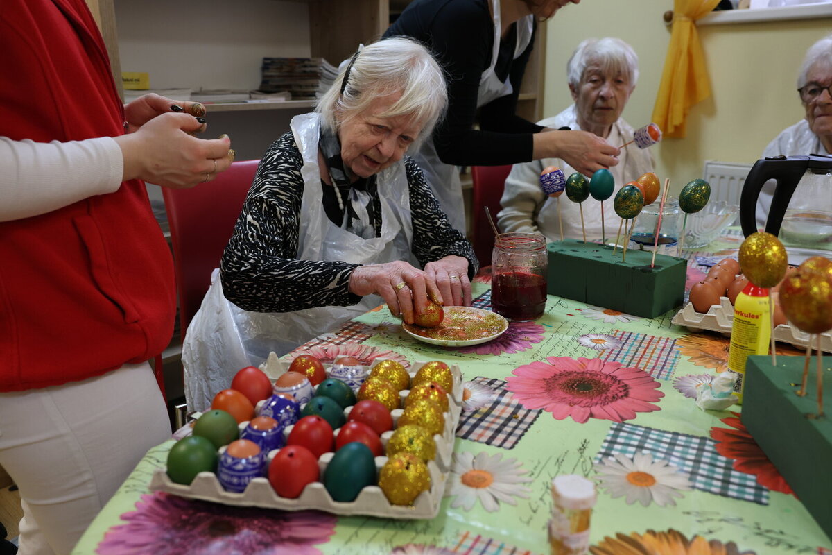 Nejprve seniorky barvily vajíčka - využily klasické barvy, ale také obtisky a třpytky, díky nimž vznikly originální a pestré kraslice.